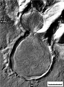 Figure 3 - Flow-like features from potential glaciers on Mars; Credit: Head et al. (2005)